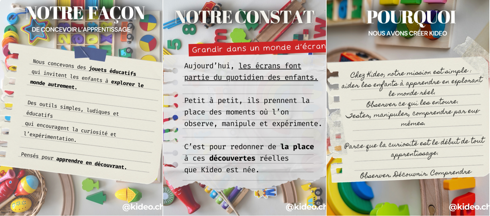 Chez Kideo, nous éveillons la curiosité des enfants à travers le jeu et l’innovation, pour les aider à grandir avec confiance et créativité.
